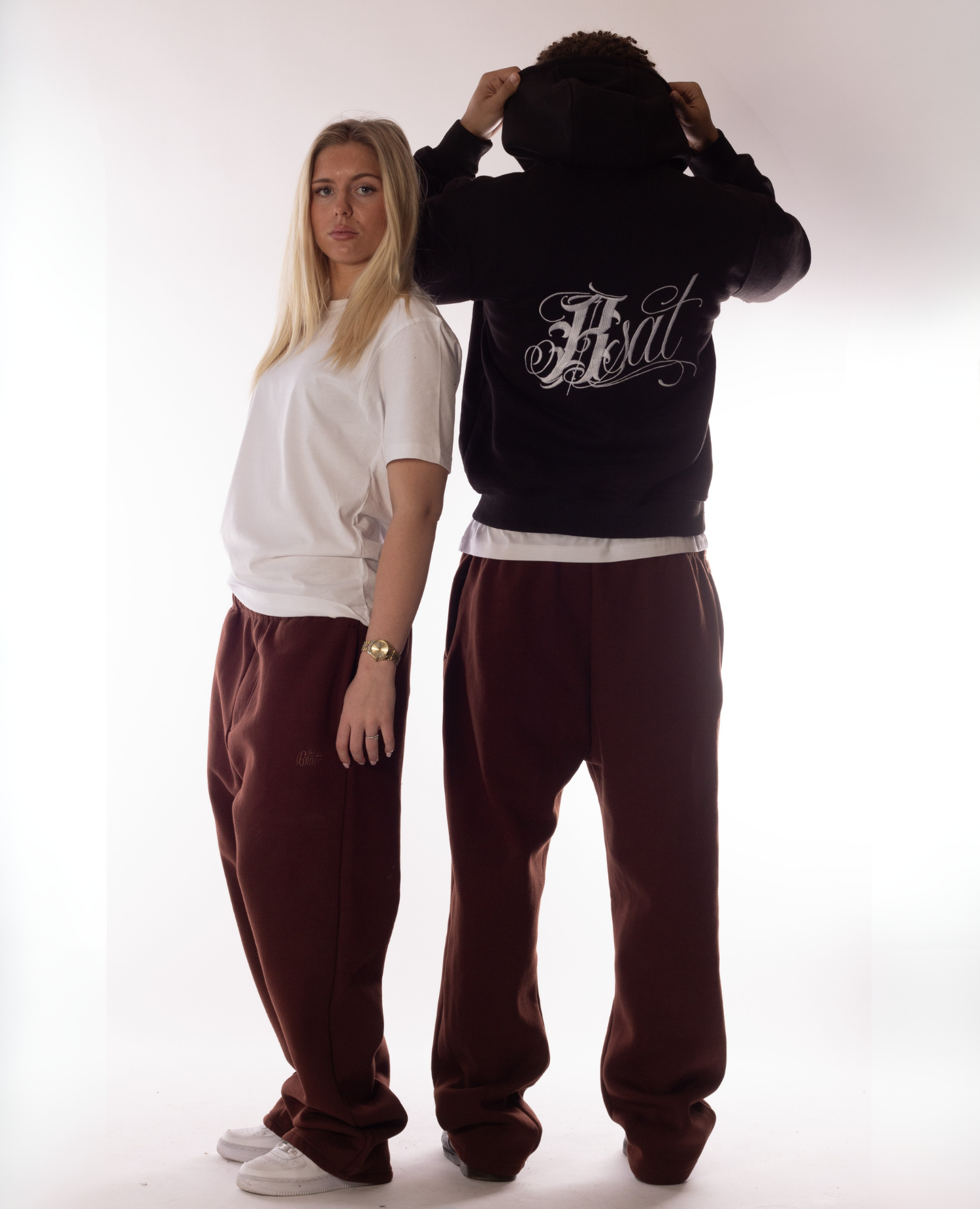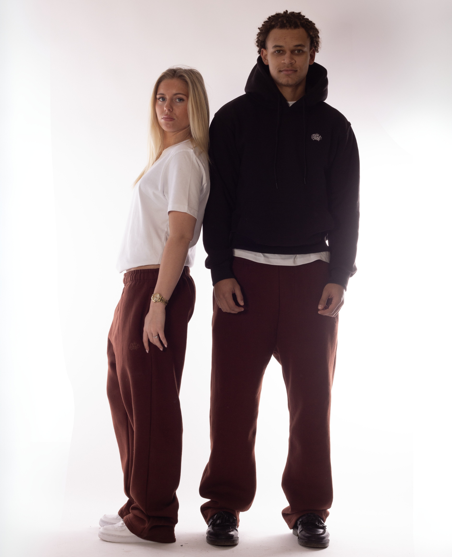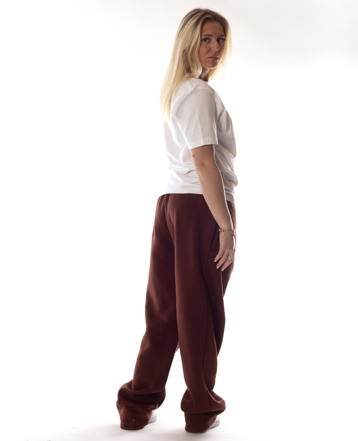 BSAT Contrast Bronx Zipped Baggy Sweatpants Ultra Soft Comfy Lounge Brown
