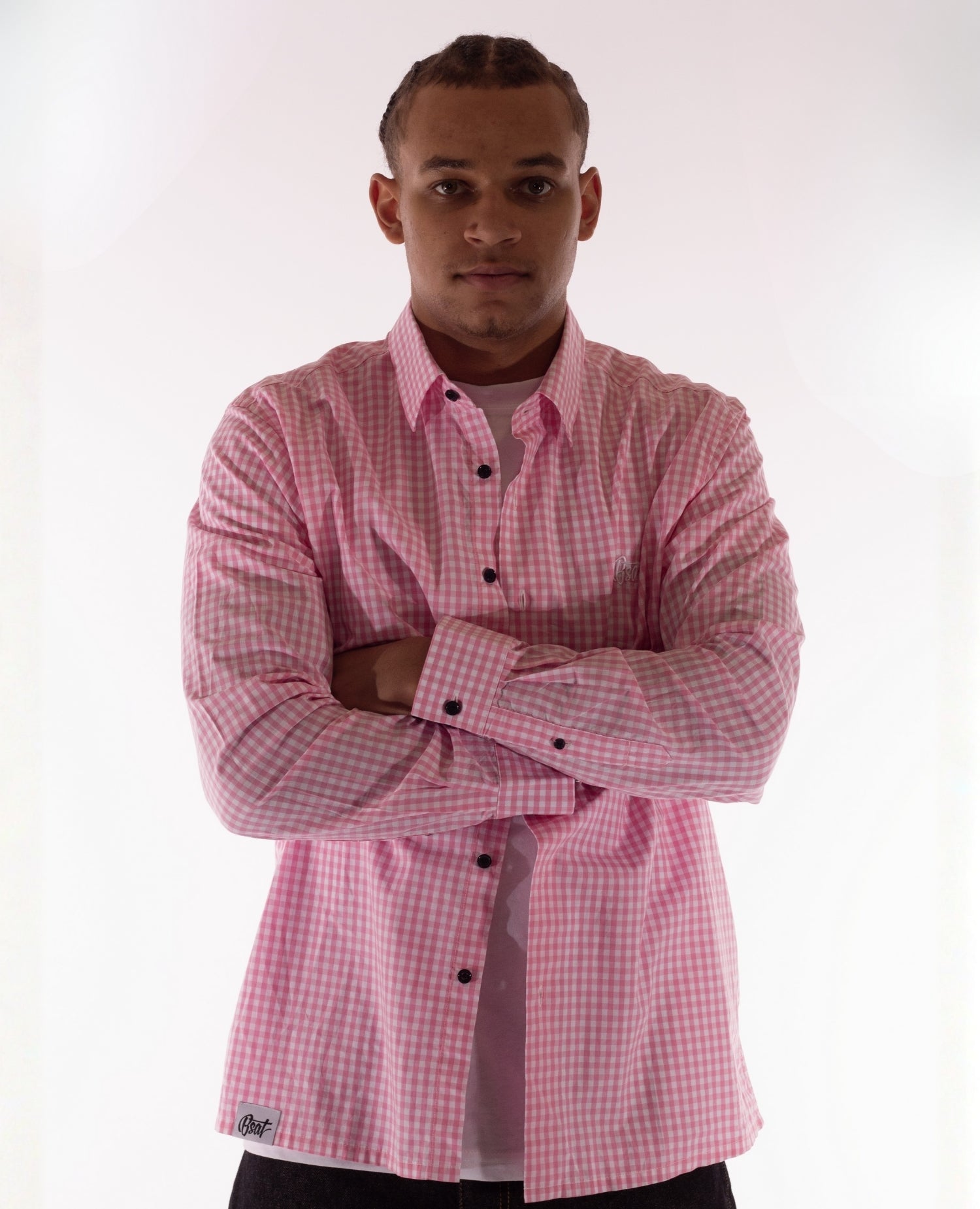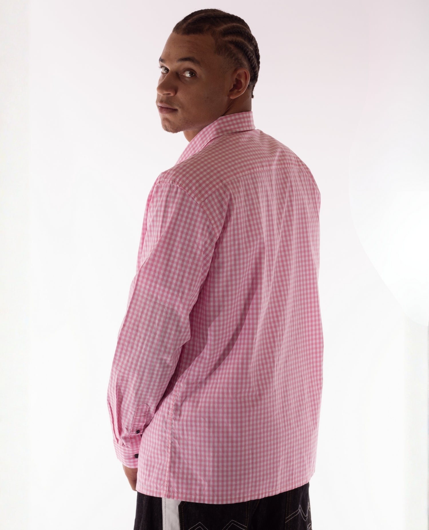 Ternet holdning. Studio finish. BSAT Studio Shirt – Micro Check Pink kombinerer det klassiske med det legende. Det fine pink/hvide ternede mønster giver et friskt udtryk, mens konstruktionen og silhuetten holder det grounded. En skjorte, der skiller sig ud uden at råbe. En del af Studio-linjen – hvor struktur og stil mødes.