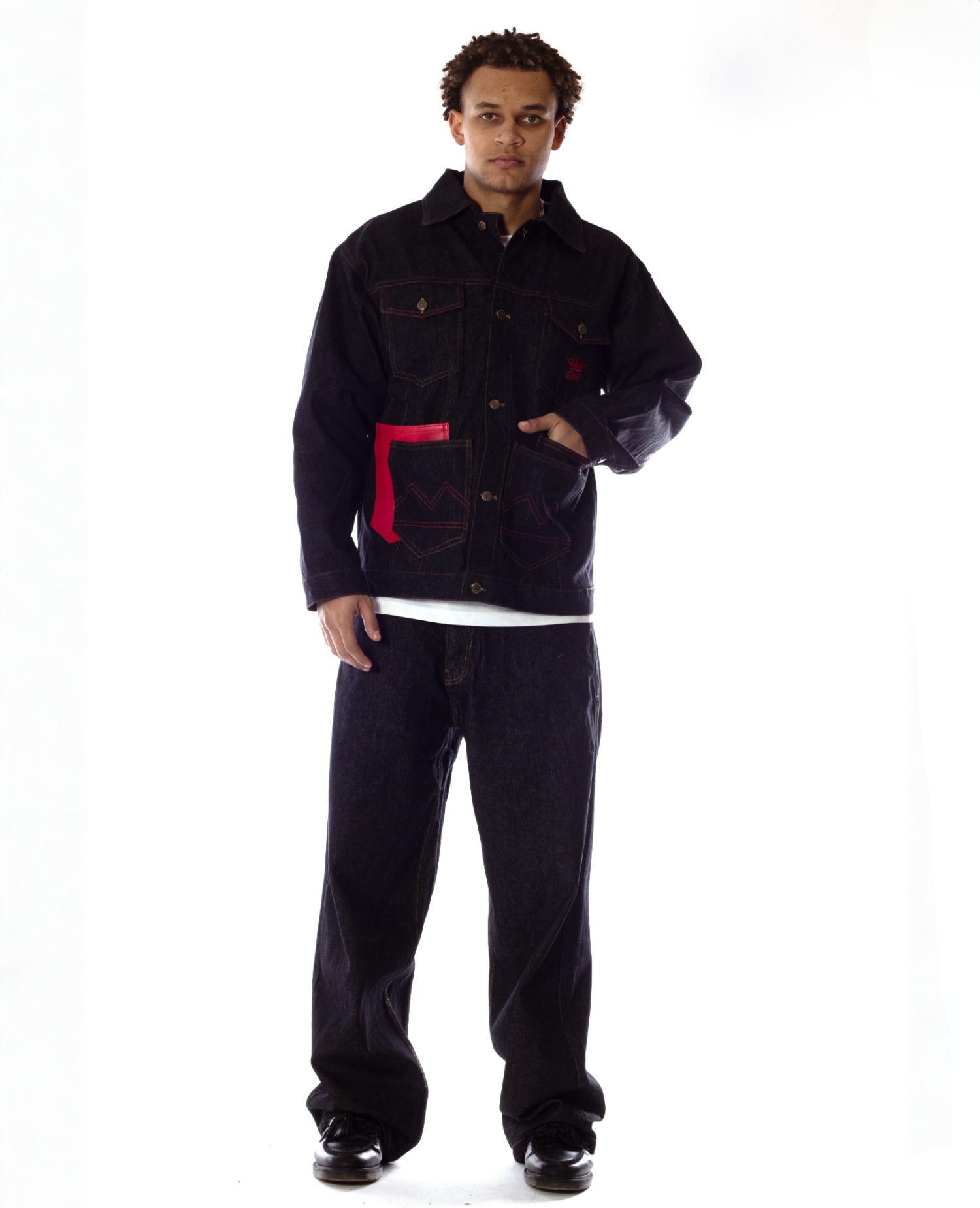 The signature 4-pocket construction defines the jacket’s BSAT identity, while the red Blazed Up contrast details cut sharply against the black denim for a powerful visual expression. Finished with premium stitching and a clean silhouette that pairs perfectly with the matching jeans – or holds its own as a statement piece.