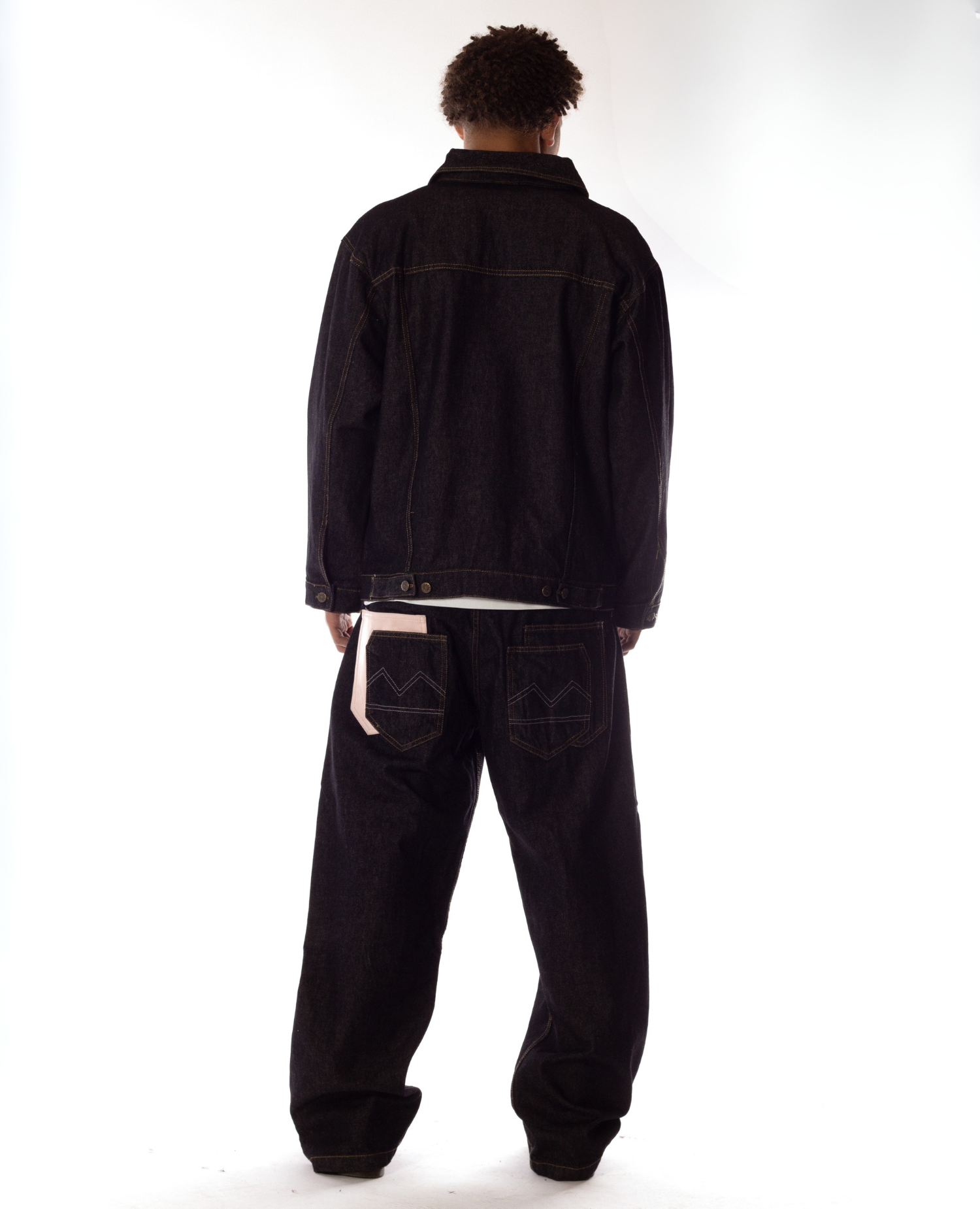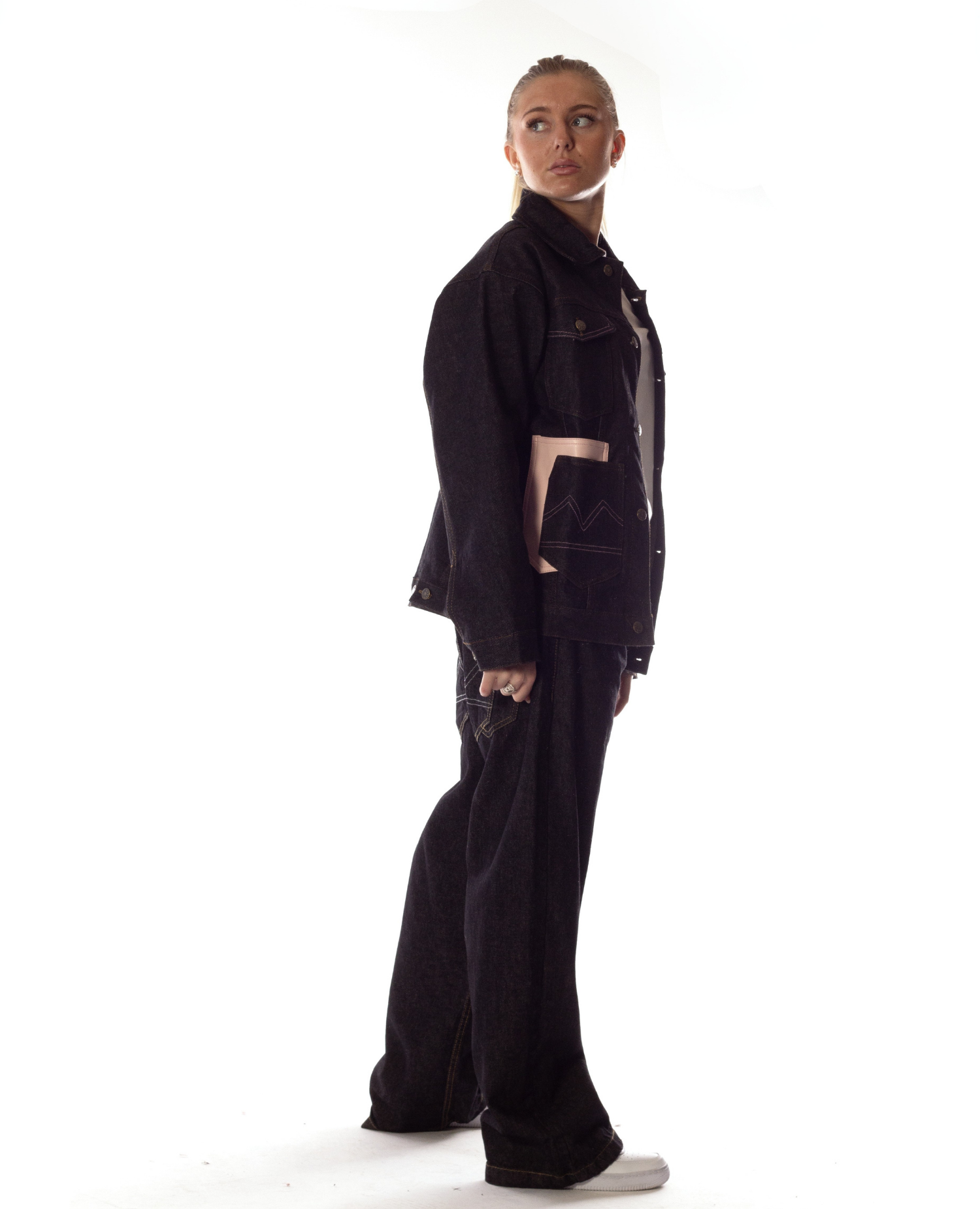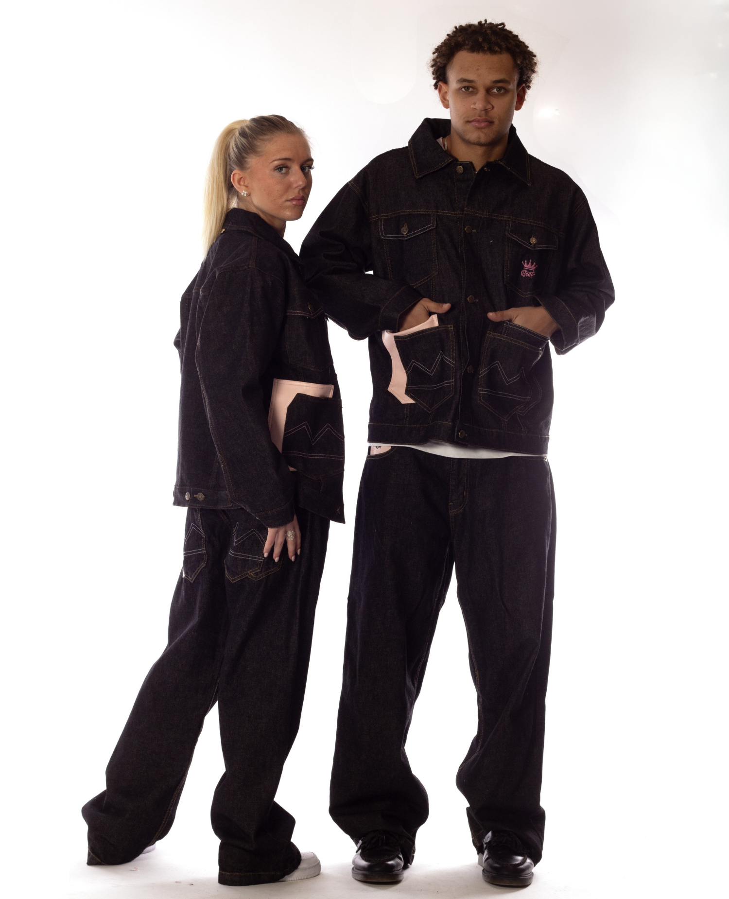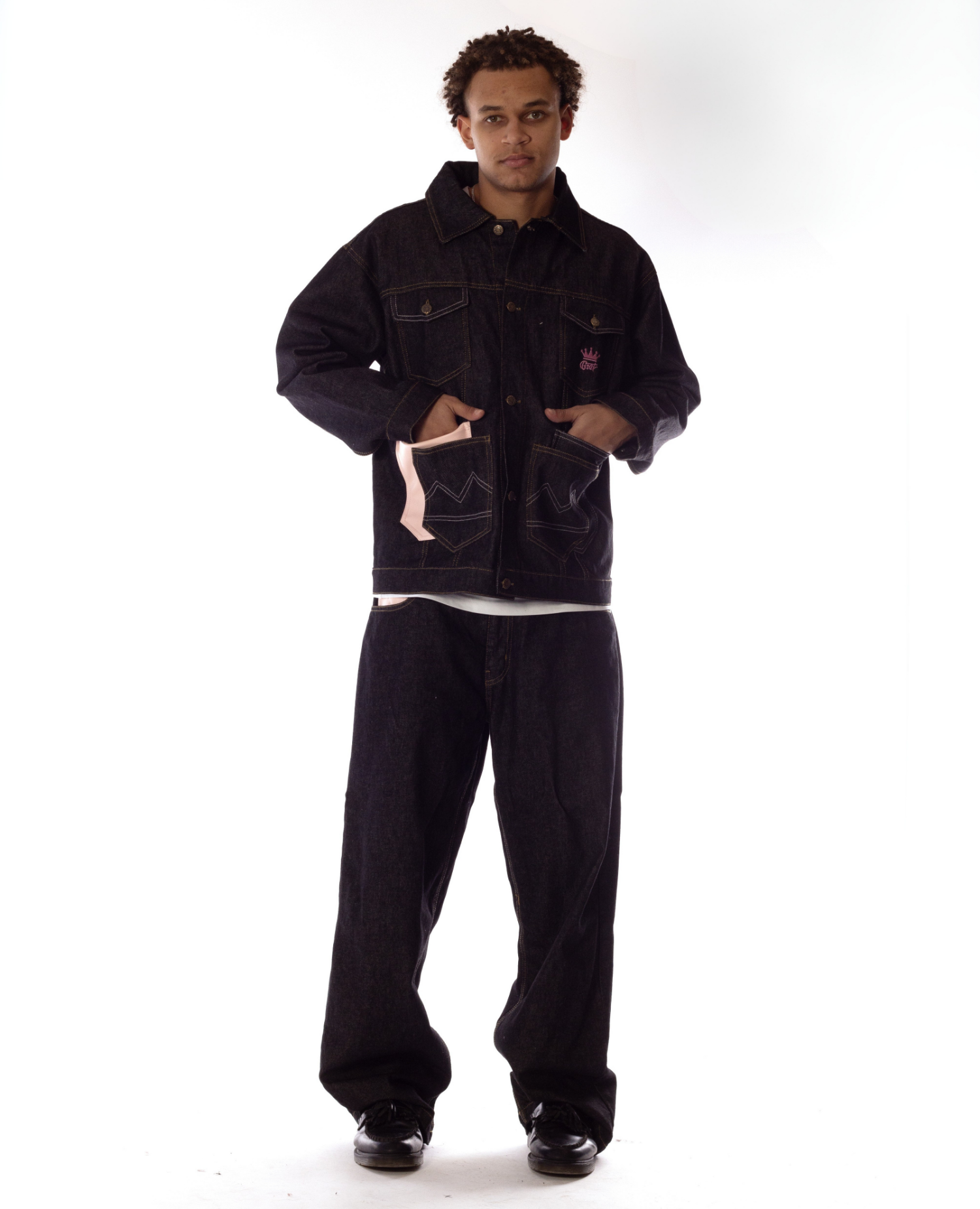 BSAT 4 Pocket Blazed Up Denim Jacket Black n Soft Pink