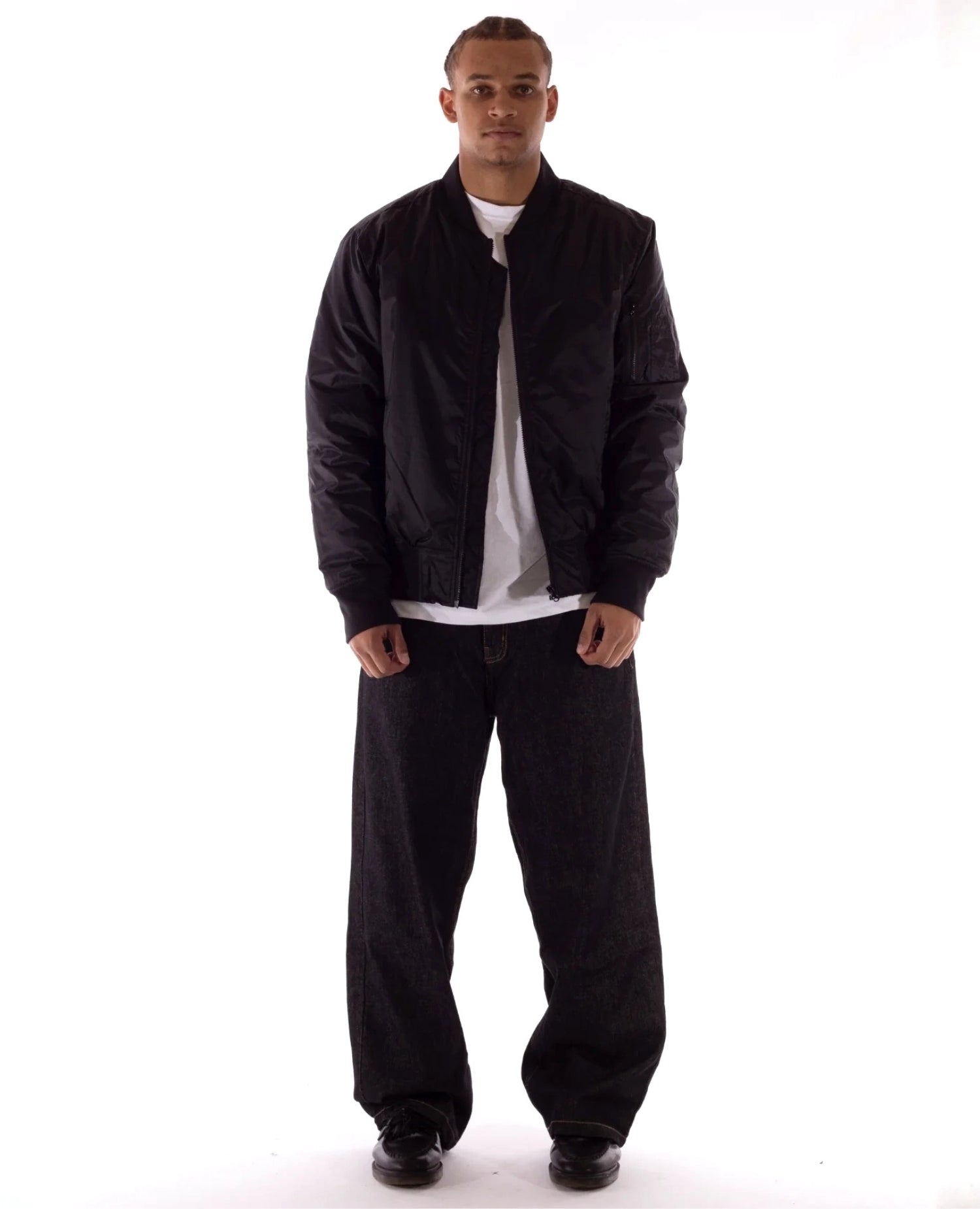It features a cropped, boxy fit with wide ribbed cuffs, collar, and hem, giving it that authentic old-school street look.