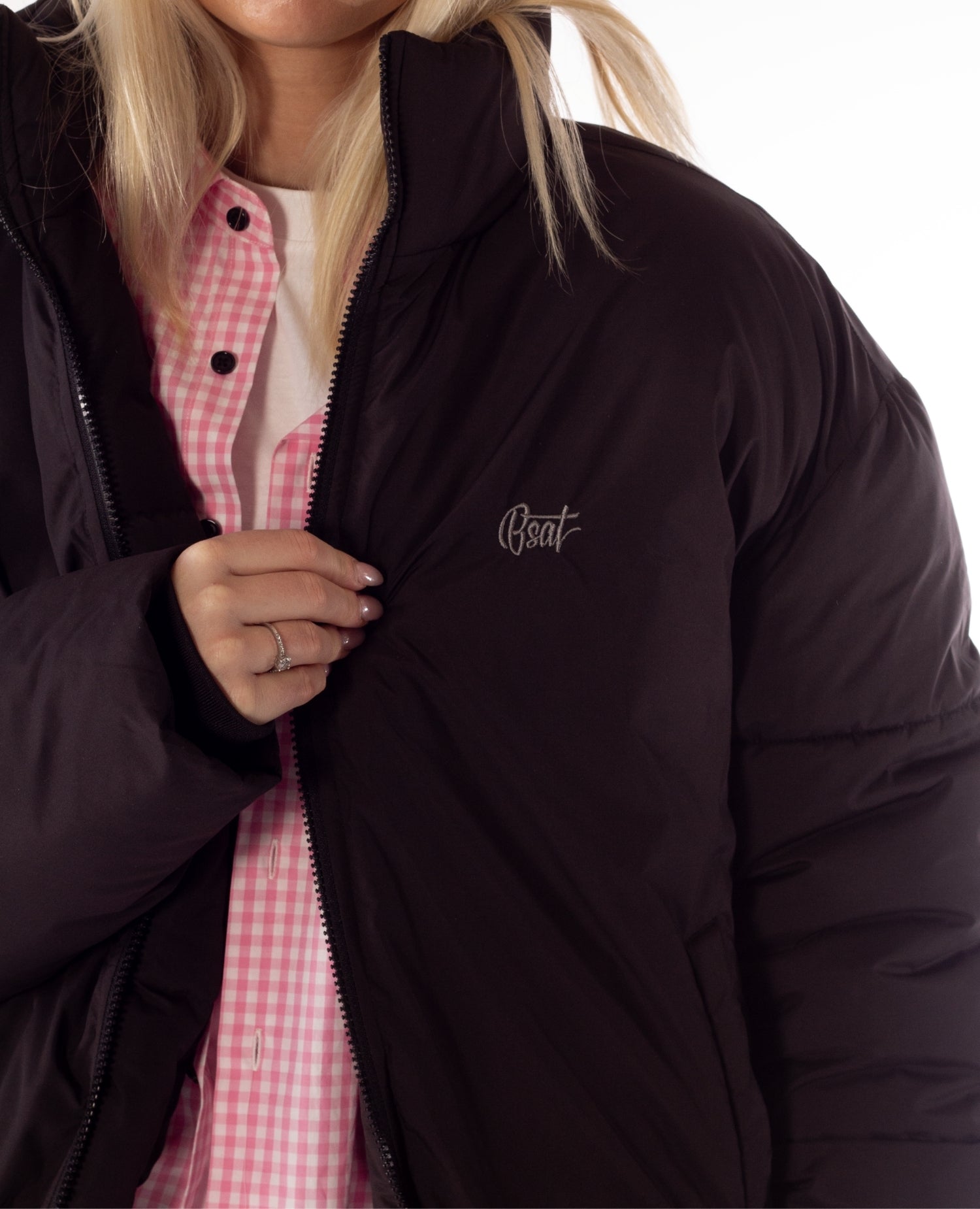 It comes with a puffy oversized fit and a sleek, hoodless design for a laid-back yet refined street look – perfect over a hoodie or sweatshirt.